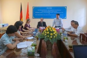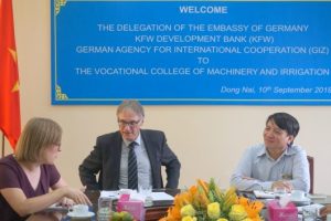 The delegates received inputs and discussed with the management staff of THPT Nguyễn Bỉnh Khiêm about the development milestones of the college, the implementation and impacts of the capacity development activities for teaching and management staff supported by the GIZ programme “Reform of Technical and Vocational Education and Training in Vietnam” and the preparation for the delivery of equipment and construction of buildings financed by KfW Development Bank. They also visited classrooms, practical training workshops and talked to teachers and trainees of the college. “I am impressed by the dedication and commitment of the teachers and management staff of THPT Nguyễn Bỉnh Khiêm to transform their college into a Centre of Excellence for Green TVET. First results are already visible”, Ms Luisa Bergfeld, who is responsible for the priority area TVET of the German Development Cooperation, stated.