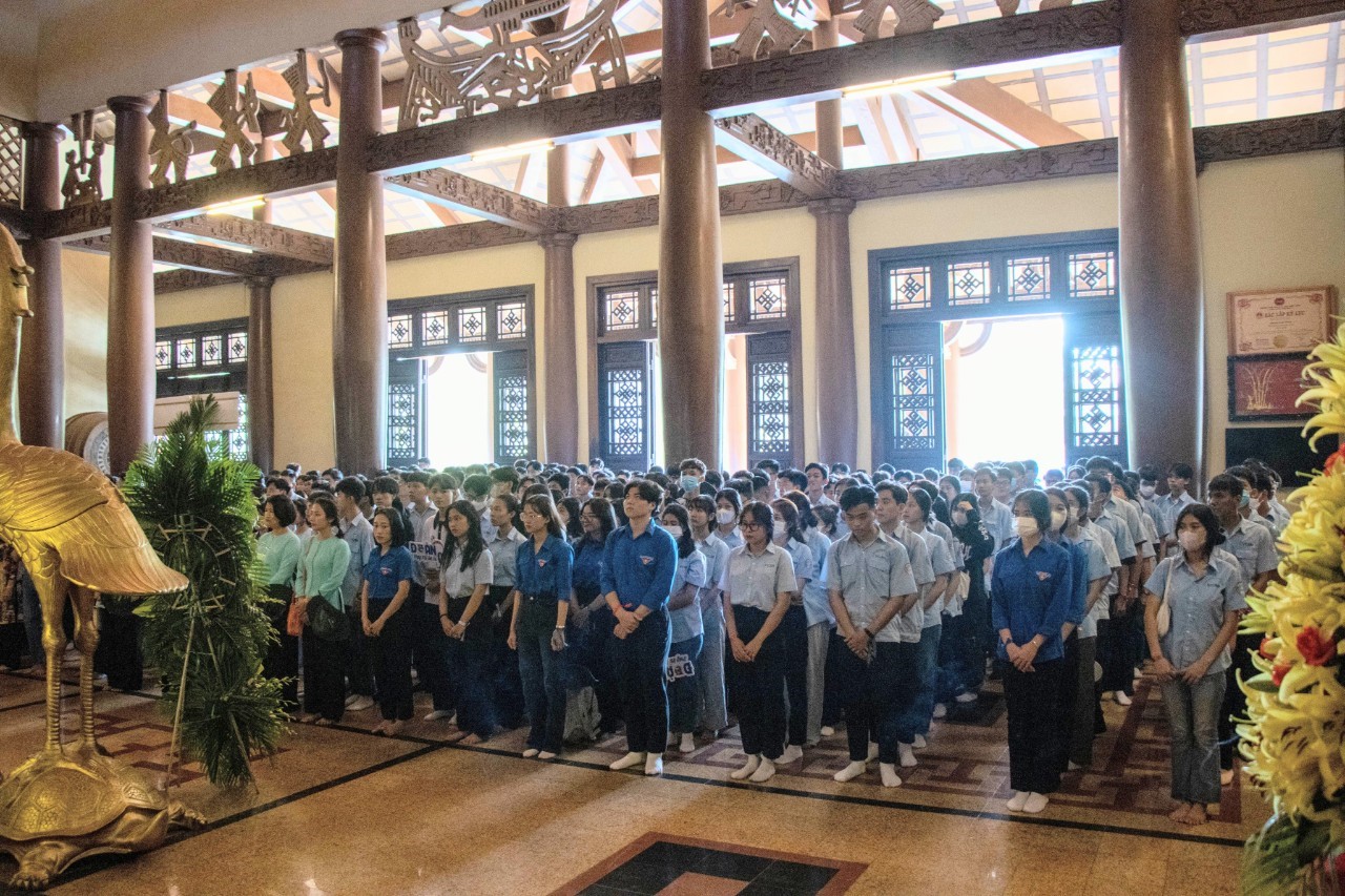 Các cán bộ giáo viên và học sinh sinh viên đã dành phút mặc niệm, kính cẩn nghiêng mình bày tỏ lòng biết ơn vô hạn và tưởng nhớ đồng bào, cán bộ, chiến sĩ đã hy sinh anh dũng vì sự nghiệp giải phóng dân tộc, xây dựng và bảo vệ Tổ quốc.