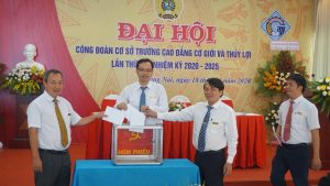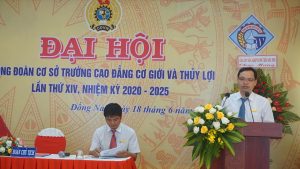 Đồng chí Phạm Duy Đông Chủ tịch công đoàn trường nhiệm kỳ 2015-2020 báo cáo kết quả hoạt động nhiệm kỳ 2015 – 2020 và đề ra phương hướng nhiệm vụ nhiệm kỳ 2020 – 2025.