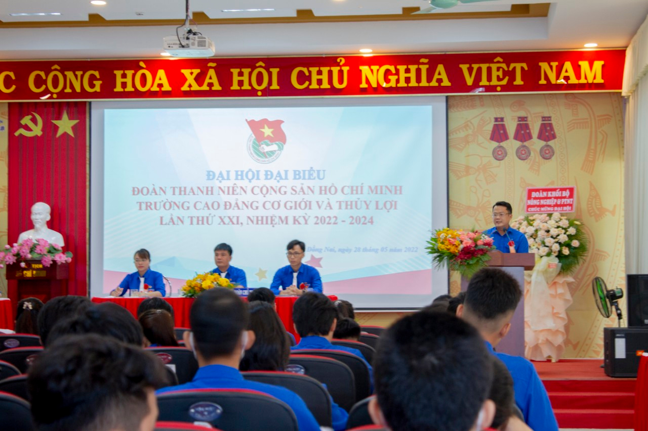 Đại hội đã nghe Dự thảo báo cáo Tổng kết nhiệm kỳ 2020-2022, mục tiêu phương hướng, nhiệm vụ công tác và phong trào thanh niên nhiệm kỳ 2022-2024; Dự thảo báo cáo kiểm điểm của Ban chấp hành Đoàn trường nhiệm kỳ 2020-2022.  Trong nhiệm kỳ 2020 – 2022, Đoàn Trường cao đẳng Cơ giới và Thủy lợi đã có nhiều hoạt động tích cực, thiết thực trong các phong trào “Xung kích tham gia phát triển kinh tế – xã hội và bảo vệ Tổ quốc”, phong trào “Thanh niên tình nguyện”… Tổ chức các chương trình đồng hành hỗ trợ thanh niên như  đồng hành với thanh niên trong học tập; chương trình đồng hành cùng thanh niên lập nghiệp, khởi nghiệp; chương trình đồng hành cùng thanh niên trong phát triển kỹ năng thực hành xã hội, nâng cao thể chất, đời sống văn hóa tinh thần, chương trình “Vì đàn em thân yêu”…Công tác giáo dục đoàn viên thanh niên đa dạng về nội dung, đổi mới phương thức, phù hợp với các đối tượng thanh niên, tạo sự chuyển biến mạnh mẽ trong công tác Đoàn. Hoạt động phong trào của Đoàn trường được triển khai đồng bộ, sâu rộng phát huy được tinh thần xung kích, sáng tạo của tuổi trẻ, tạo sân chơi lành mạnh, bổ ích cho đoàn viên thanh niên, nâng cao chất lượng đào tạo nhà trường, góp phần vào sự phát triển chung của đất nước. Xây dựng tổ chức Đoàn ngày càng vững mạnh về mặt chính trị, tư tưởng.
