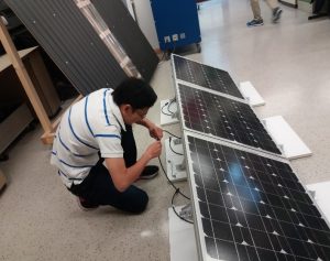 Học viên (giáo viên của Trường) thực hành lắp đặt hệ thống Pin năng lượng mặt trời ở hộ gia đình
