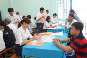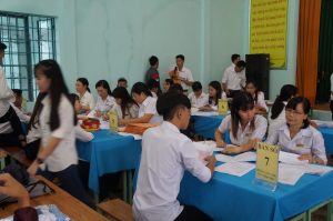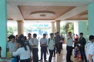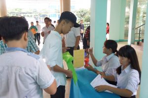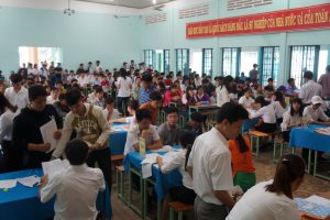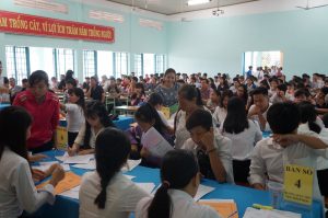 Các tân học sinh, sinh viên được hướng dẫn trước khi tiến làm hành thủ tục nhập học