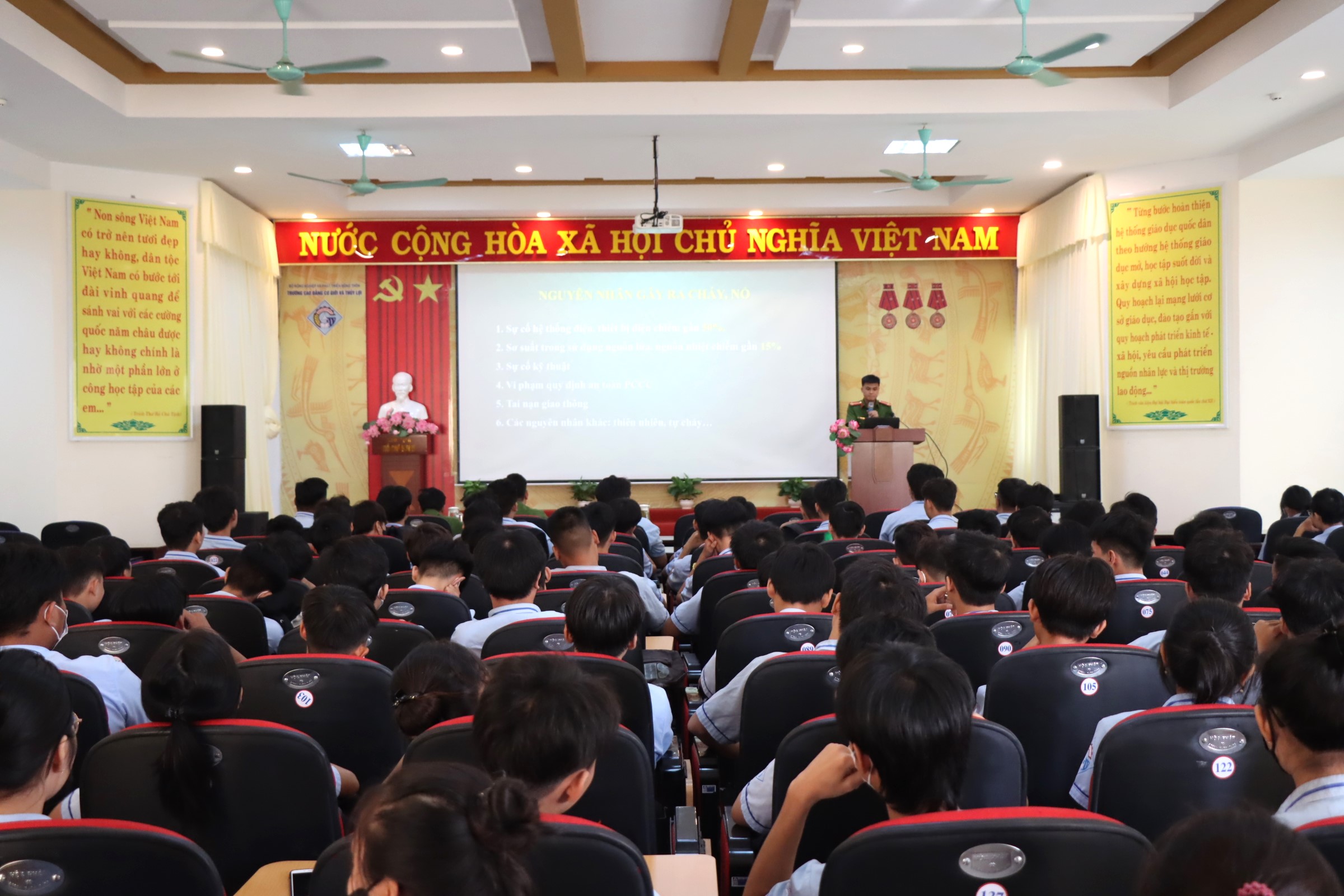 Học sinh sinh viên học tập kiến thức về phòng cháy chữa cháy và cứu nạn cứu hộ trong hội trường