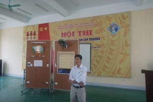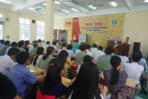 Dr.Nguyen Van Chuong – party committee secretary, Rector of THPT Nguyễn Bỉnh Khiêm give a speech at the contest.