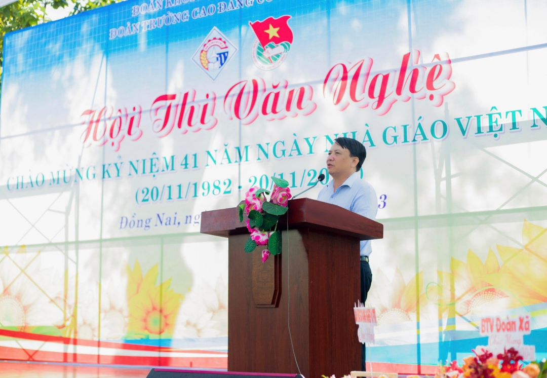 Phát biểu tại Hội thi, đồng chí Nguyễn Văn Chương đã thay mặt Đảng uỷ, BGH nhà trường cảm ơn các đồng chí trong Đoàn khối, Huyện đoàn và Đoàn xã đã đến tham dự; cảm ơn quý thầy cô đã nhiệt huyết cùng với đoàn trường để tổ chức hội thi văn nghệ hôm nay. Đồng chí đã khẳng định, Hội thi chính là một sân chơi lành mạnh, tạo điều kiện kết nối giữa các em học sinh sinh viên với nhau, kết nối giữa các lớp với nhau, kết nối tình cảm giữa thầy cô với nhau để tạo ra một khối thống nhất xây dựng phong trào văn hoá văn nghệ của nhà trường trong những năm vừa qua và những năm tiếp theo phát triển hơn nữa. Đồng chí cũng mong muốn Đoàn khối, Huyện đoàn, Đoàn xã có mối giao lưu tốt hơn nữa với Đoàn trường để xây dựng phong trào đoàn trường ngày càng phát triển. Cuối cùng, đồng chí mong muốn Hội thi đạt được những thành công nhất định, đem lại những lời ca tiếng hát, đem lại những buổi sinh hoạt giao lưu văn nghệ thật bổ ích giúp học sinh sinh viên nhà trường có được tinh thần, thái độ học tập tốt nhất để đạt kết quả cao.
