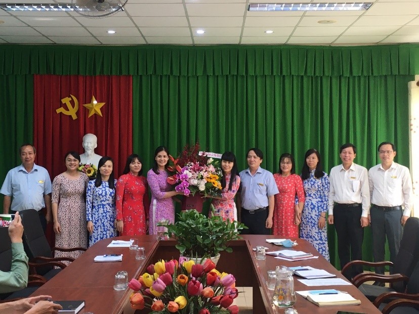 Sáng 6/3, Đảng ủy, Ban Giám hiệu, BCH Công đoàn trường tổ chức gặp mặt đại diện Ban nữ công và chị em phụ nữ nhà trường chúc mừng ngày quốc tế phụ nữ 8/3.