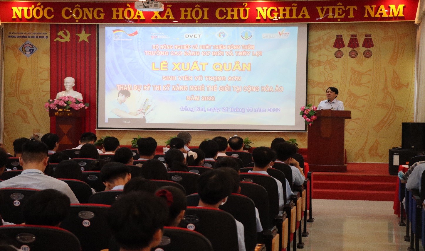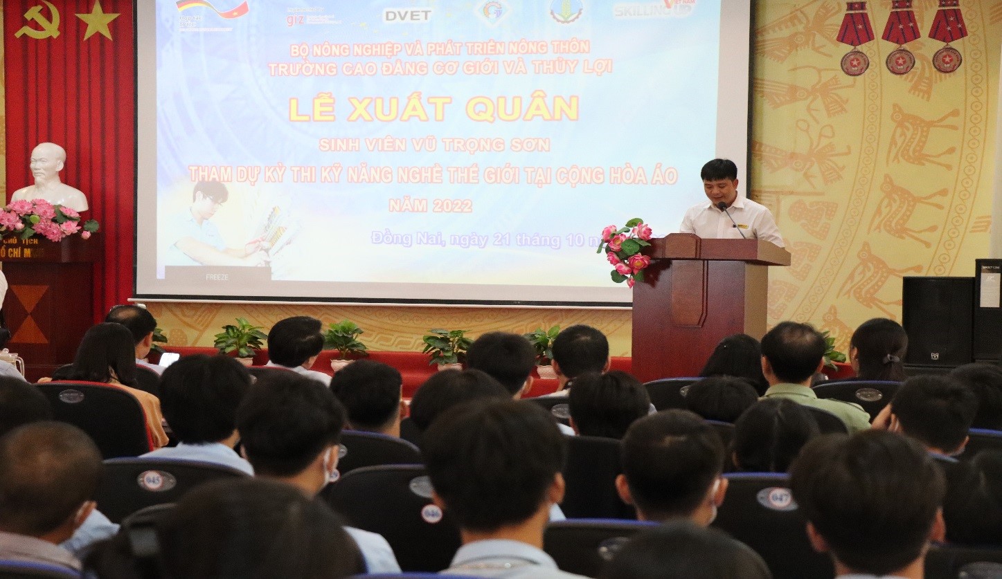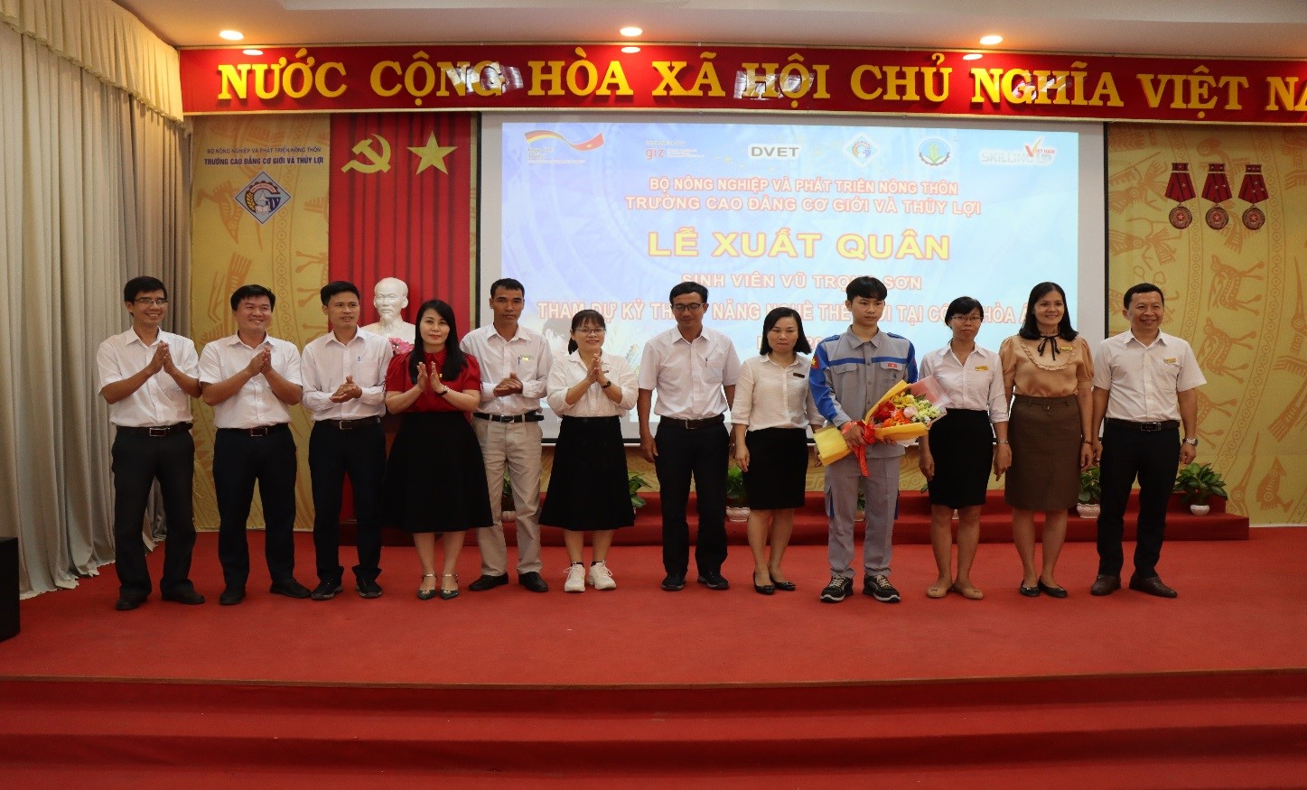 Sáng ngày 21/10, tại Trường Cao đẳng Cơ giới và Thuỷ lợi đã diễn ra Lễ xuất quân cho sinh viên Vũ Trọng Sơn tham dự kỳ thi kỹ năng nghề thế giới tại Cộng hoà Áo năm 2022. Buổi Lễ diễn ra trang trọng, ấn tượng và giàu cảm xúc, có tác dụng khích lệ tinh thần lớn lao tới em Vũ Trọng Sơn trước khi lên đường tham dự kỳ thi.