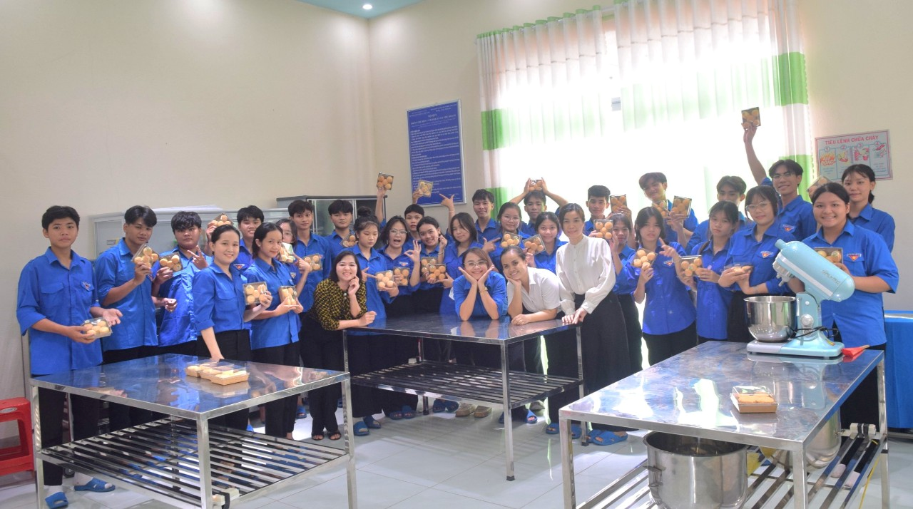 Ngoài ra, các em trong đội xung kích còn được trải nghiệm môn học chế biến sau thu hoạch trong những bộ trang phục của những thợ làm bánh. Cũng không ai ngờ rằng, những học sinh sinh viên nghề Điện, Cơ khí, Ô tô lại có thể tự tay mình làm ra những chiếc bánh bông lan đẹp và thơm ngon đến vậy. Đây là một trải nghiệm hạnh phúc không phải bất kì trường nghề nào có được.