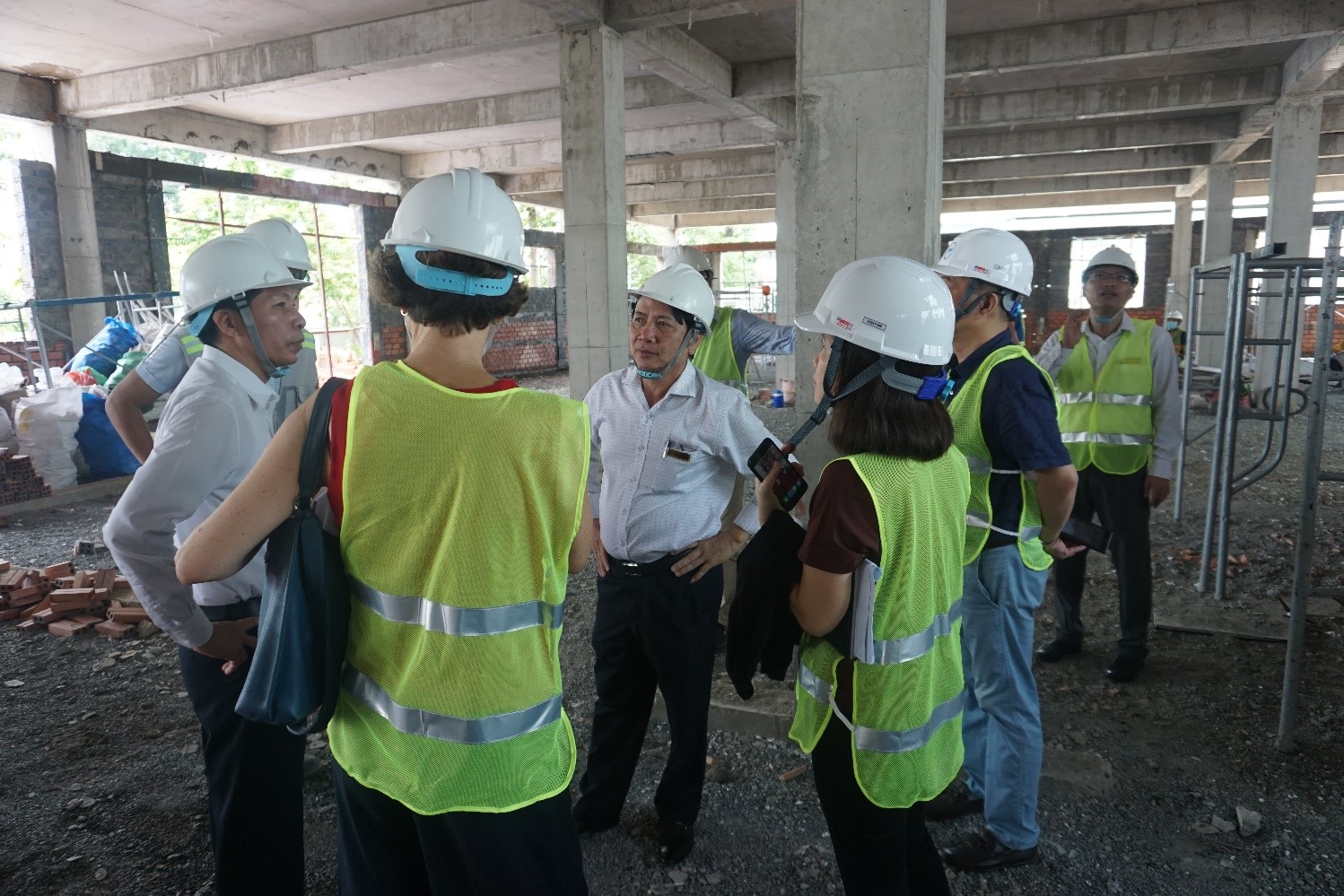 Đoàn công tác thăm quan cơ sở vật chất và công trình Tòa nhà xanh đang thi công tại THPT Nguyễn Bỉnh Khiêm