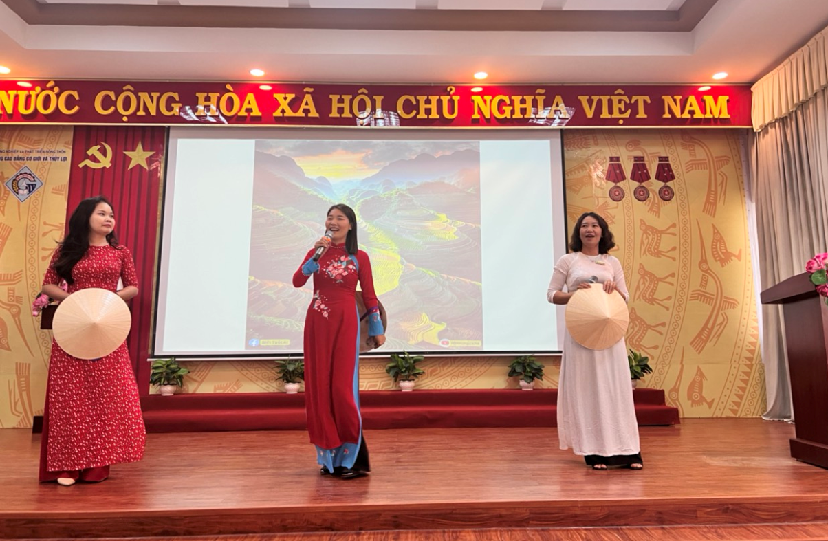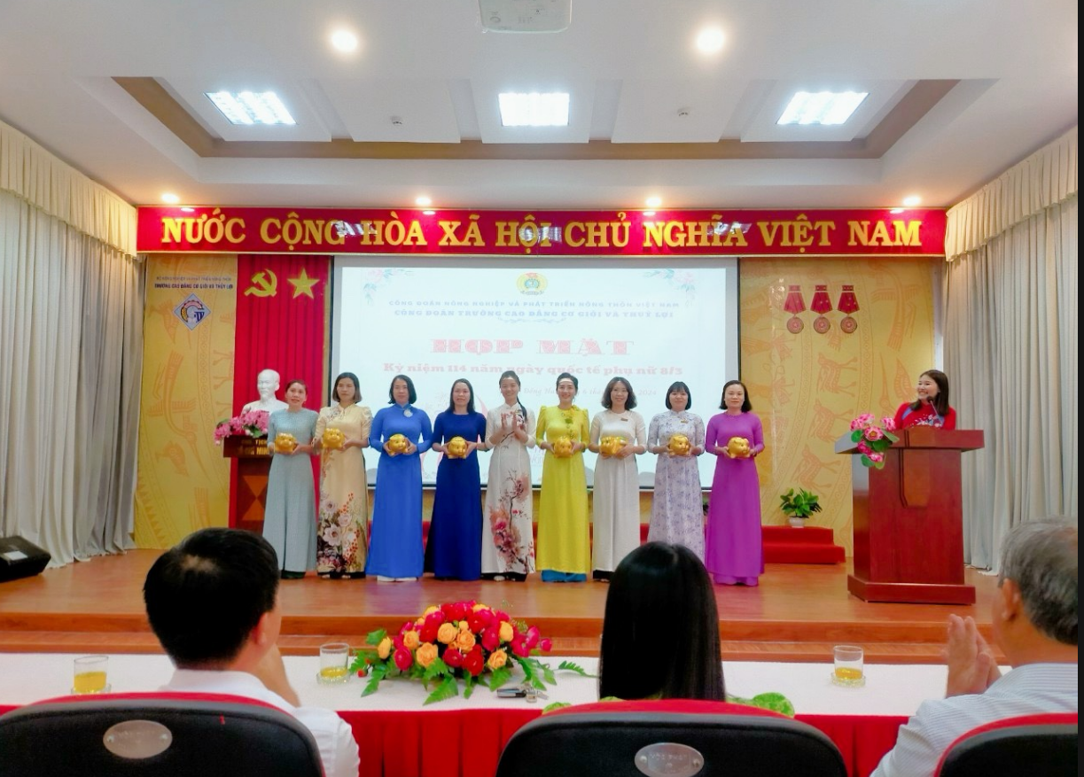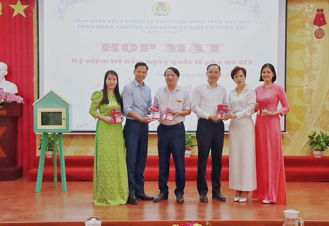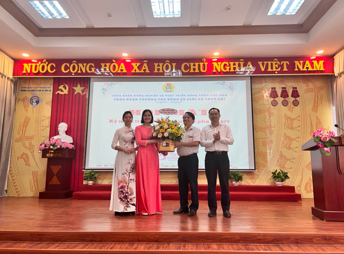 Phát biểu tại buổi toạ đàm, Đồng chí Nguyễn Văn Chương, Bí thư Đảng ủy, Hiệu trưởng nhà trường đã gửi những lời chúc tốt đẹp nhất đến toàn thể nữ cán bộ, giáo viên, nhân viên trong trường; ghi nhận những đóng góp tích cực của chị em trong sự phát triển chung của Trường. Mong muốn chị em phụ nữ nhà trường luôn cố gắng, nỗ lực và sáng tạo không ngừng nghỉ để hoàn thành xuất sắc nhiệm vụ được giao; tích cực học tập, nghiên cứu, nâng cao trình độ chuyên môn nghiệp vụ. Thay mặt lãnh đạo trường, Đ/c Nguyễn Văn Chương – Bí thư Đảng uỷ, Hiệu trưởng nhà trường và Đ/c Phạm Duy Đông – Phó Hiệu trưởng, Chủ tịch Hội đồng trường đã trao tặng bó hoa tươi thắm chúc mừng chị em nhân ngày quốc tế phụ nữ 8/3.