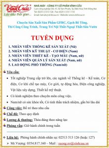 Công ty cổ phần Vĩnh Cửu tuyển dụng