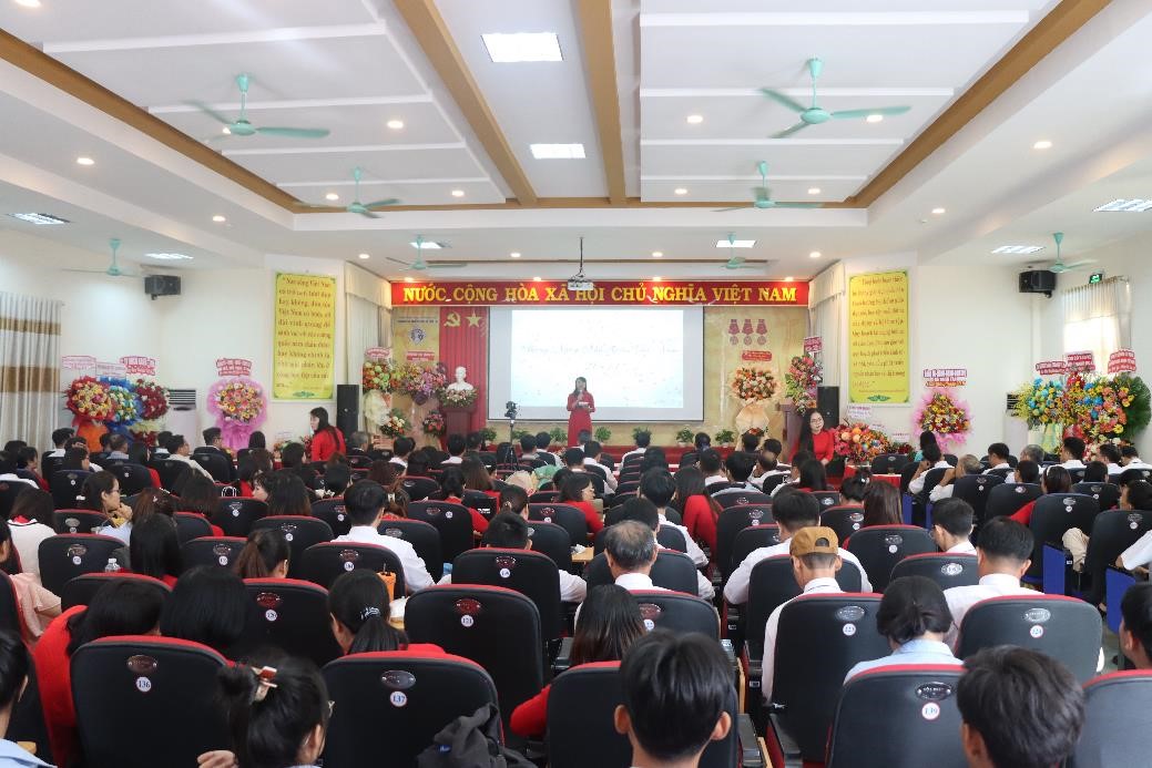 Đồng chí Lê Thị Đạo – Phó Bí thư Đảng ủy Trường đọc thư chúc mừng Ngày Nhà giáo Việt Nam của Bộ trưởng Bộ Nông nghiệp và PTNT.  Ảnh: P.Q.Huy