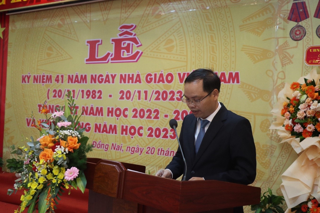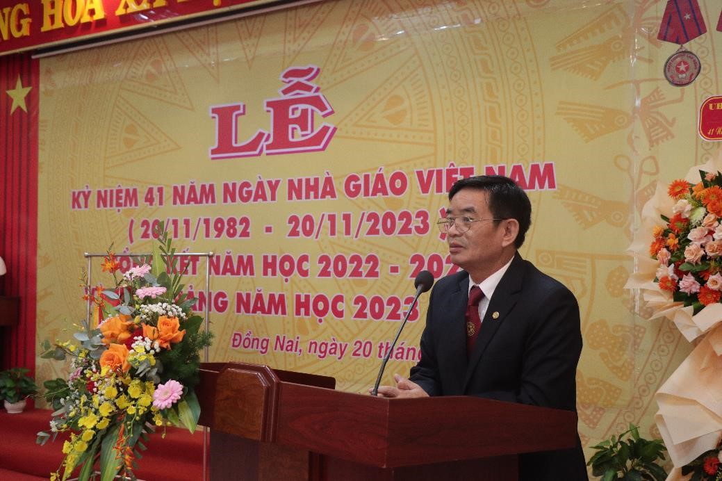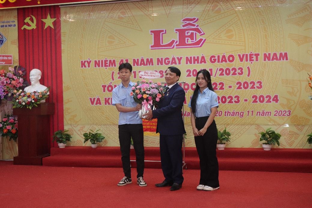 Thay mặt lãnh đạo nhà trường, Đồng Chí Phạm Duy Đông – Đảng ủy viên, Chủ tịch Hội đồng Trường, phó hiệu trưởng Nhà trường đã đọc Diễn văn kỷ niệm 41 năm Ngày Nhà giáo Việt Nam và khai giảng năm học mới 2023-2024. Trường tri ân các nhà giáo, đồng thời tổng kết những thành tựu và kết quả đạt được trong năm học 2022 -2023, trong đó nhấn mạnh tính đoàn kết, nỗ lực phấn đấu cùng nhau của tập thể cán bộ, nhân viên, giáo viên trường trong việc hoàn thành các nhiệm vụ đề ra, đưa Nhà trường ngày càng phát triển.