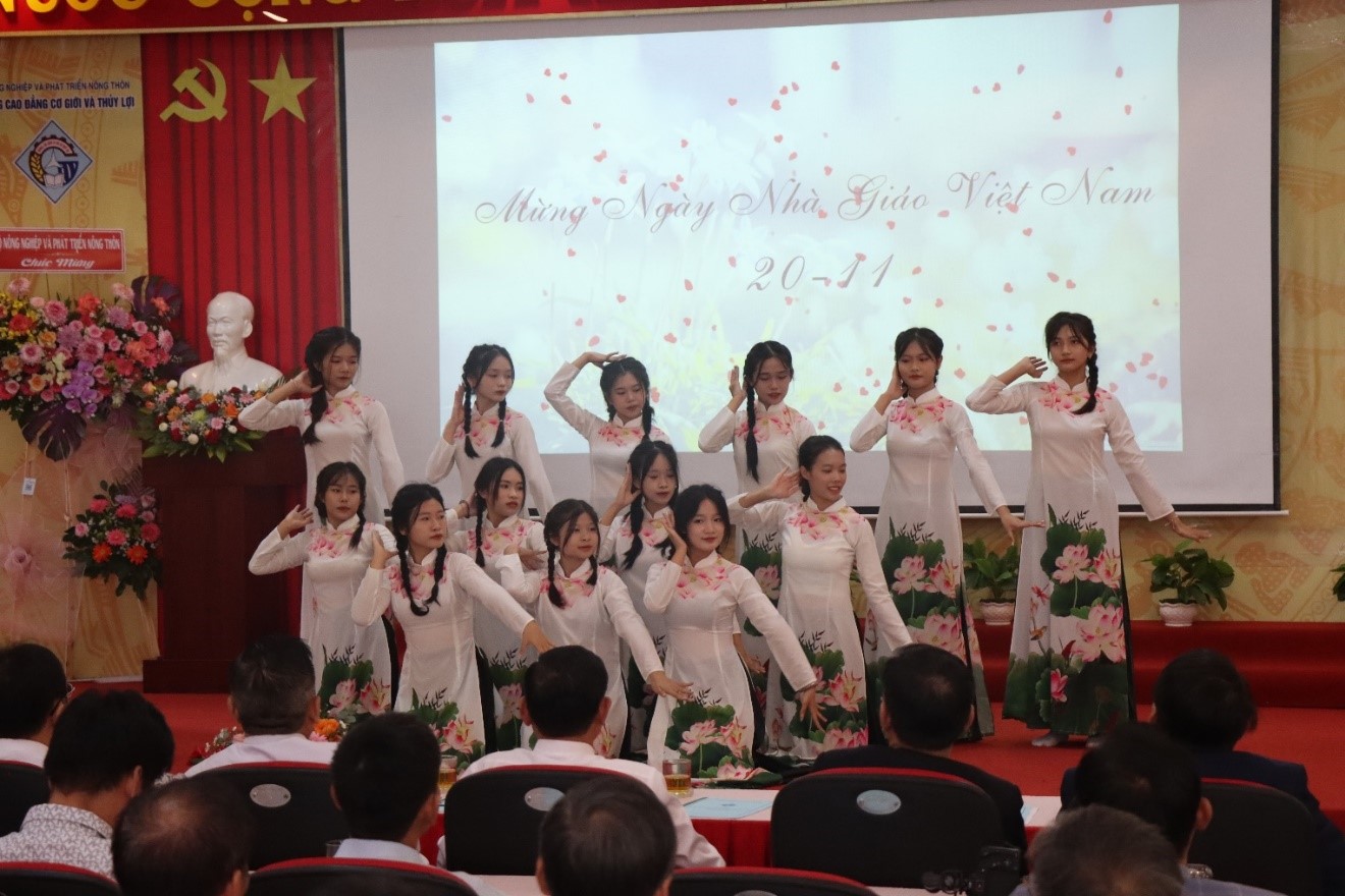 Sau các tiết mục văn nghệ là phần chính của buổi lễ, Đồng chí Lê Thị Đạo – Phó Bí thư Đảng ủy đã đọc thư chúc mừng ngày Nhà giáo Việt Nam của Bộ trưởng Bộ Nông nghiệp và Phát triển nông thôn Lê Minh Hoan. Trong thư, Bộ trưởng gửi lời chúc mừng tốt đẹp nhất, giàu cảm xúc nhất, nhiều hy vọng nhất đến cán bộ lãnh đạo, thầy cô giáo đang thực hiện sứ mạng cao cả “trồng người”, vì tương lai đất nước…”. Tập thể Nhà trường xin trân trọng cảm ơn tấm lòng và sự quan tâm của Bộ trưởng.