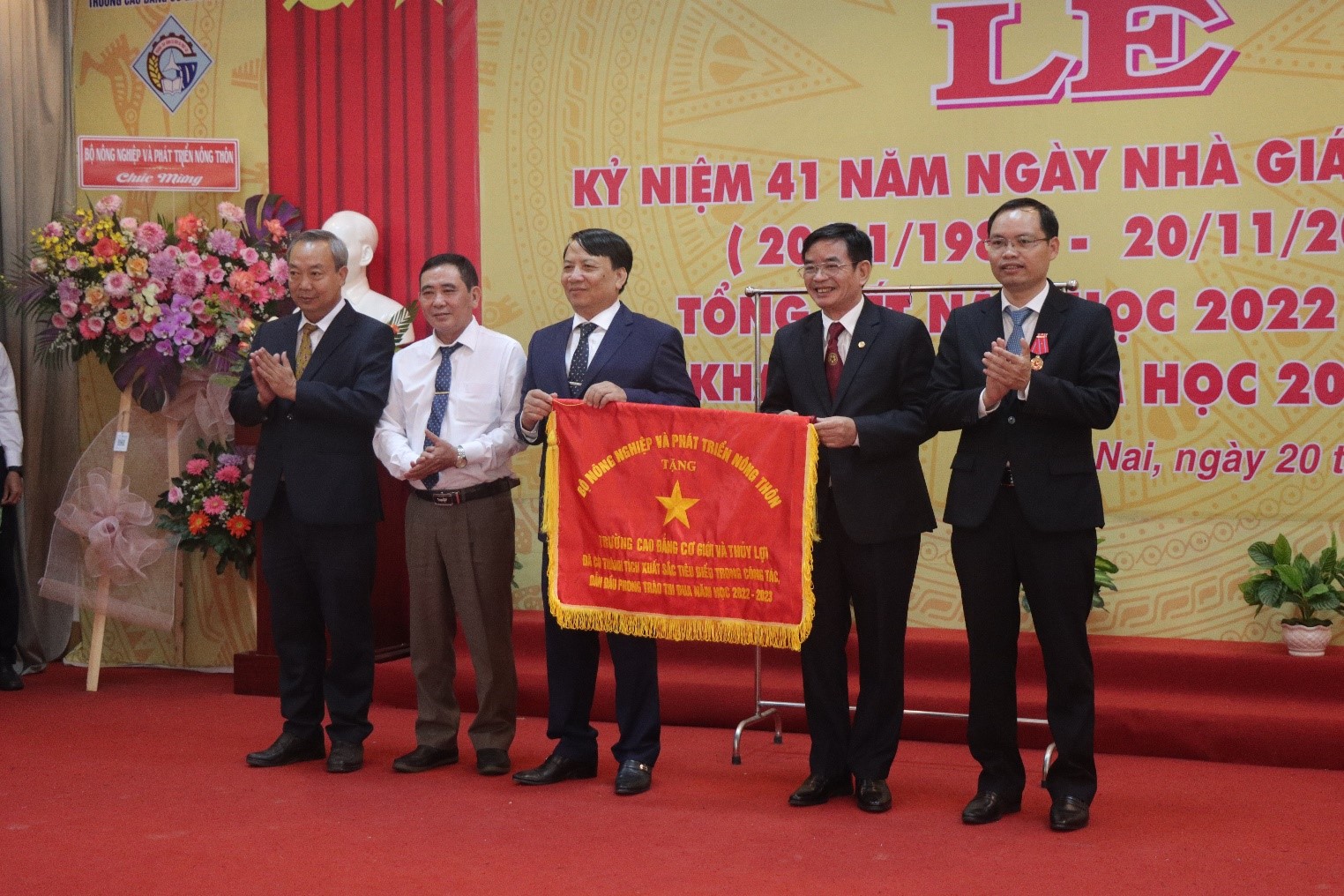 Ban giám hiệu đại diện nhận cờ thi đua từ Bộ Nông nghiệp và Phát triển nông thôn. Ảnh: P.Q.Huy