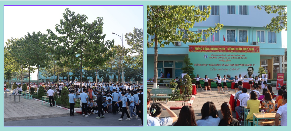 Sáng ngày 20/4/2024 tại khuôn viên Trường Cao đẳng Cơ giới và Thuỷ lợi đã tổ chức chương trình “Ngày sách và văn hoá đọc Việt Nam 21/4” và hưởng ứng Dự án “Đọc sách cùng Xích Lô” do Bộ trưởng  Bộ Nông nghiệp và PTNT Lê Minh Hoan sáng lập.