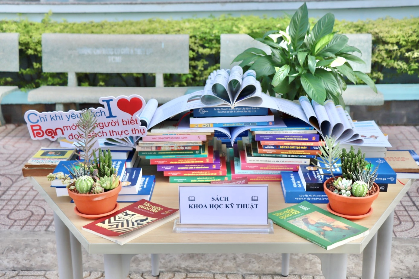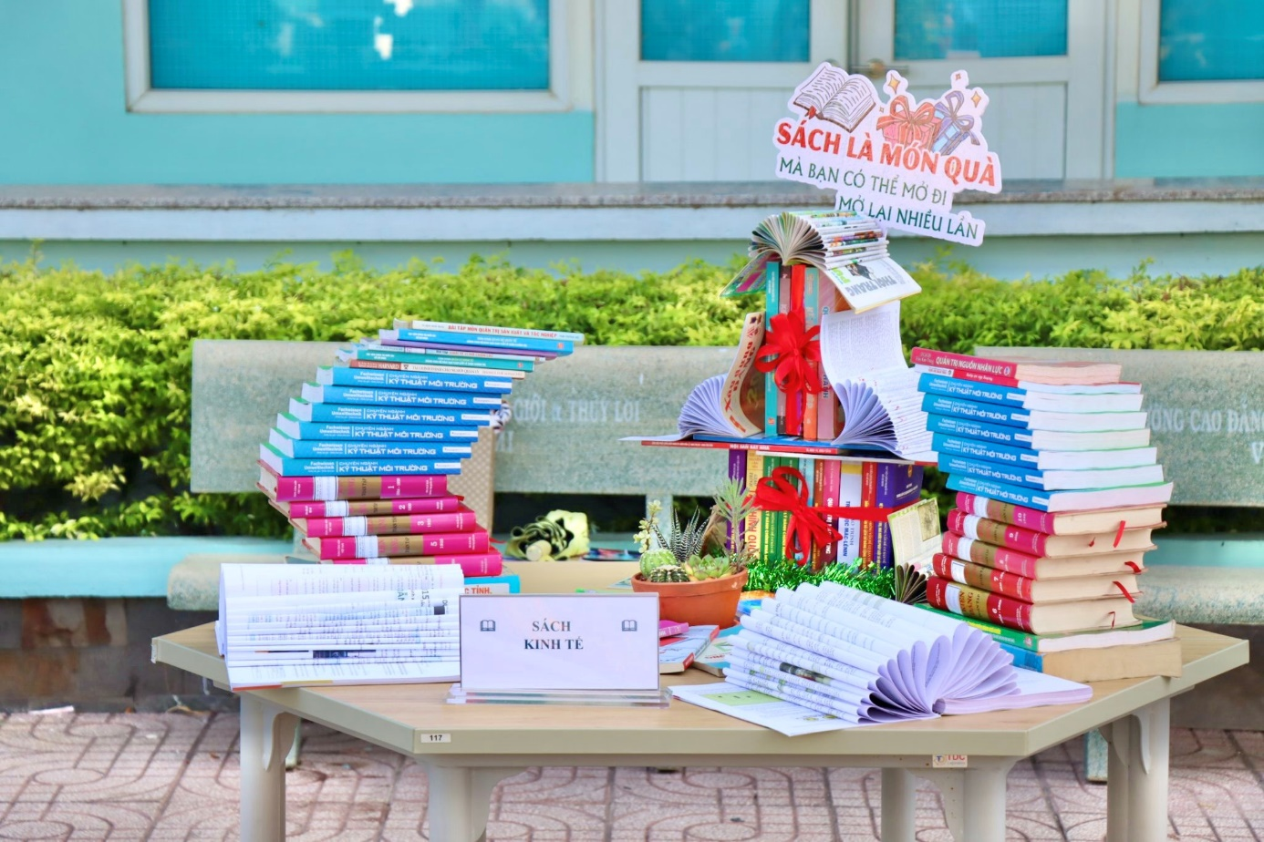 Bên cạnh đó, các đại biểu cùng cán bộ, giáo viên và HSSV đã tham quan và đọc sách tại các gian trưng bày, giới thiệu sách. Bằng sự sáng tạo và nâng niu những trang sách, các phòng/khoa cùng các em HSSV đã sắp xếp, trưng bày, lựa chọn những cuốn sách hay để xếp thành các mô hình đẹp, ý nghĩa nhằm tạo ấn tượng cho người xem, thu hút các độc giả yêu sách.