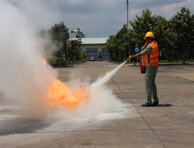 Phần thực hành, các thành viên đội PCCC và cán bộ giáo viên nhà trường được thực hành các kỹ năng bảo quản, sử dụng phương tiện, trang thiết bị phòng cháy chữa cháy, cách sử dụng họng nước chữa cháy vách tường, bình chữa cháy xách tay trang bị tại cơ sở, Kỹ thuật rải vòi, cuộn vòi và lắp lăng chữa cháy, thao tác, sử dụng hệ thống máy bơm chữa cháy, vận hành máy bơm điện và bơm dầu PCCC, dải dây và lắp vòi phun thực hiện phun nước chữa cháy đúng qui định. Ngoài ra còn được tập luyện triển khai các đội hình chữa cháy như: Đội hình 01 lăng A, đội hình 02 lăng B…
