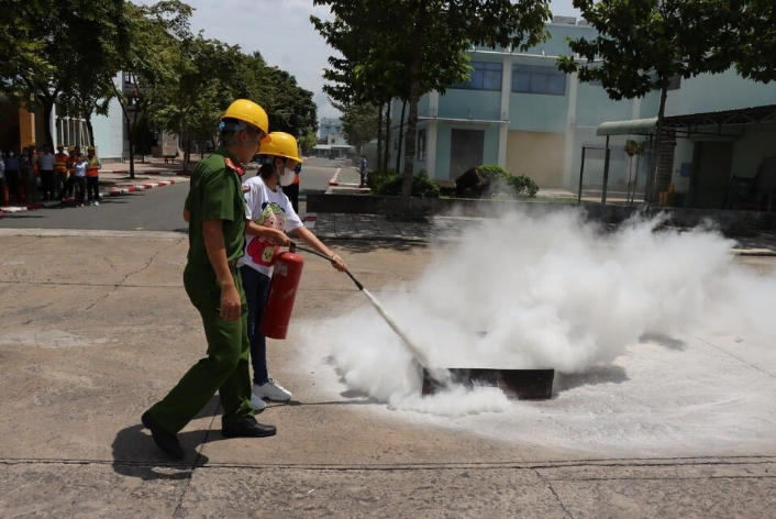 Trường THPT Nguyễn Bỉnh Khiêm tổ chức tập huấn nghiệp vụ phòng cháy, chữa cháy cho cán bộ viên chức người lao động